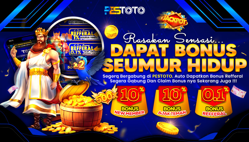 SELAMAT DATANG DI PESTOTO BANDAR SLOT ONLINE, LIVE CASINO, TOGEL ONLINE TERPERCAYA DI INDONESIA DENGAN BONUS TANPA BATAS SETIAP HARI - LAYANAN TRANSAKSI BANK ONLINE 24 JAM. MINIMAL DEPOSIT IDR 5.000,- DAN WITHDRAW IDR 25.000,-